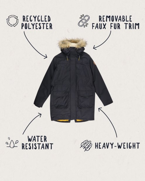 50 % Recycelter Polyester 50 % Polyester Oxford-Taslan-Außenmaterial Mit Einer PFC-freien Wasserabweisenden Beschichtung (DWR). 140 G Isolierung Aus Recyceltem Polyester, Nylonfutter Und Ein Kapuzenfutter Aus Recyceltem Sherpa-Fleece. Recyceltes Polyester Reduziert Unsere Abhängigkeit Von Erdöl, Reduziert Die Wasser- Und Luftverschmutzung, Die Bei Der Herstellung Von Reinem Polyester Entsteht, Und Vermeidet Unnötigen Deponieabfall.