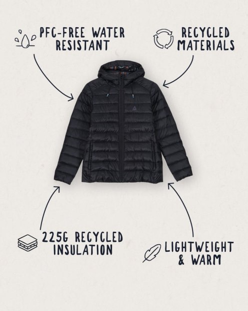 100 % Recyceltes Polyester (20D) Mit Einer PFC-freien Wasserabweisenden Beschichtung (DWR), 225 G Recycling-Polyester-Isolierung Und 100 % Nylon-Jackenfutter. Recyceltes Polyester Reduziert Unsere Abhängigkeit Von Erdöl, Reduziert Die Wasser- Und Luftverschmutzung, Die Bei Der Herstellung Von Reinem Polyester Entsteht, Und Verhindert Unnötigen Deponieabfall.