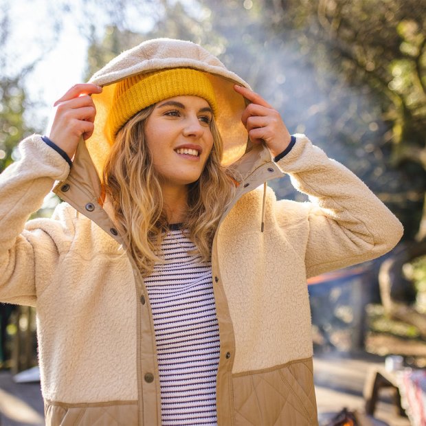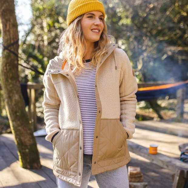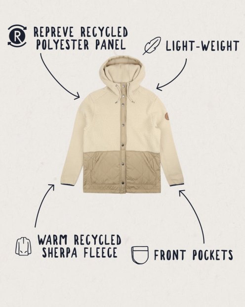 Auf Der Suche Nach Einer Schicht Mit Outdoor-tauglichen Eigenschaften, Die Sie Gefunden Haben Es. Die Dome Hooded Jacket Ist Aus 100 % Recyceltem Sherpa-Fleece Mit Einem Unteren Einsatz Aus Recyceltem Ripstop Für Abenteuer, Die Mit Etwas Spritzwasser Einhergehen! Es Ist Ein Warmes, Funktionelles Und Tragbares Teil, Bereit Für Zeitgemäße Übergänge.