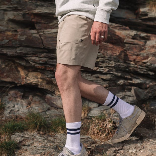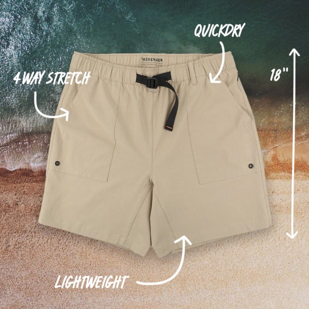 Unser 18 Zoll Adventure-Shorts Sind An Land Und Im Wasser Zu Hause. Hergestellt Aus Einem Schnell Trocknenden, Leichten Und Super Bequemen Stretchmaterial Mit Verstellbarem Vorderverschluss Und Geräumigen Taschen, Um Ihre Sachen Sicher Aufzubewahren.