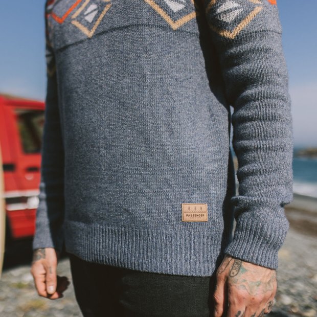 Passenger Exclusive Kaminstrickpullover Steinblau