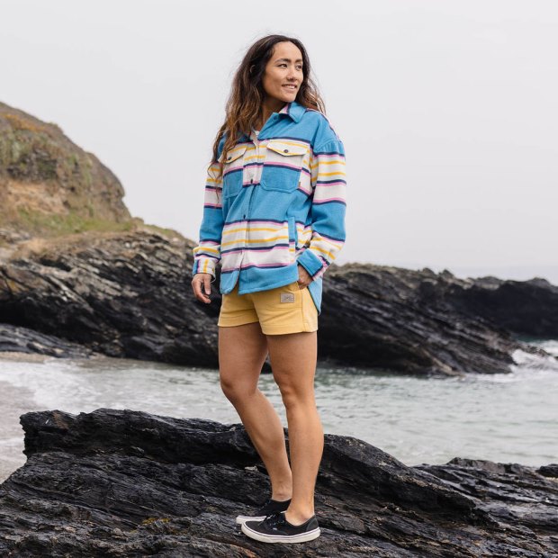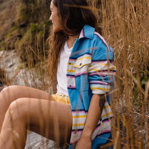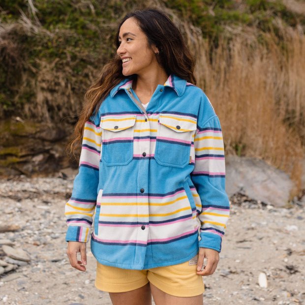 Startseite| Frauen| Kleidung| Vlies| Passenger Exclusive East Recycling-Polarfleece-Hemd Mit Weichen, Kobaltblauen Mix-Up-Streifen