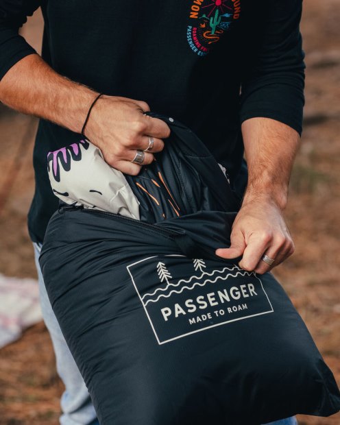 Hergestellt Aus 100 % Recycelten Plastikflaschen Und Mit Einem Hervorragenden Wärme-Gewichts-Verhältnis Sind Unsere Nomadic-Reisedecken Eine Ikone Im Entstehen.